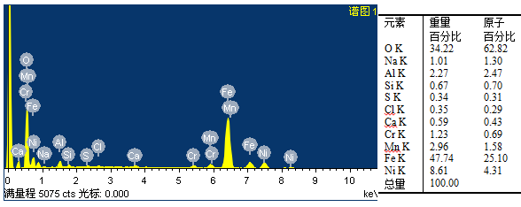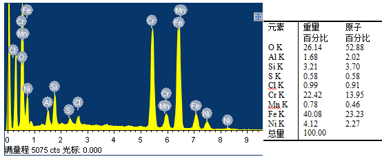 (5)送檢管子內壁存在很多的蝕坑。內壁微觀形貌為典型點蝕坑形貌,這與表面腐蝕產物中含有氯元素一致。