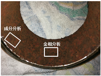 在管子內壁腐蝕處取樣進行截面分析,取樣位置如圖7所示。