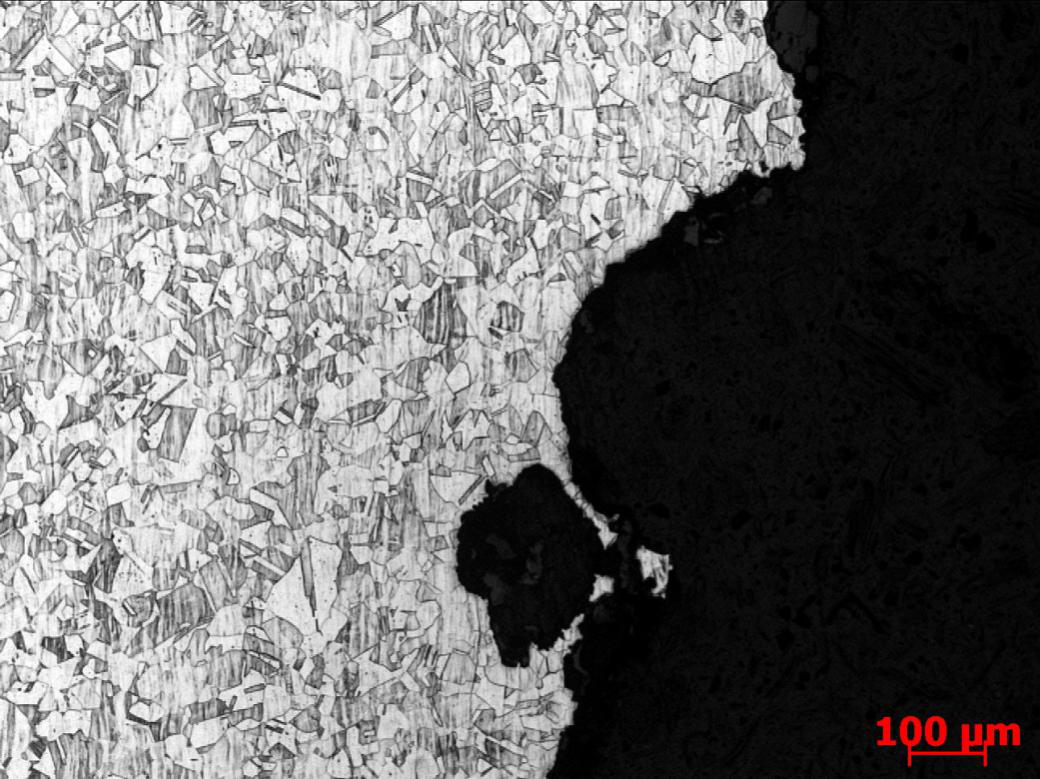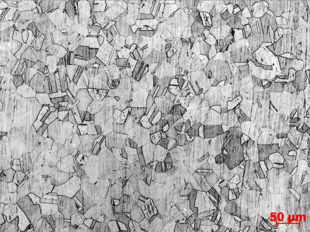 (4)送檢管子橫截面及縱截面組織均為奧氏體+孿晶,晶粒度6.0級。未見晶粒不均、有害相析出等缺陷。