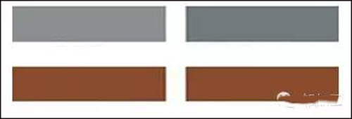 色差又稱色像差,是透鏡成像的一個嚴重缺陷,簡單來說就是顏色的差別(如圖1所示),GB 5237.4中要求粉末噴涂型材色差不大于1.5。在鋁型材靜電粉末涂裝中,涂膜產生色差的原因主要有粉末涂料和粉末涂裝工藝控制兩方面。