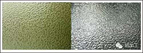 (2)涂膜太薄,流平受阻不能很好展開,此時能看到型材基體紋理;涂膜超厚,涂膜表面呈斑紋狀桔皮;