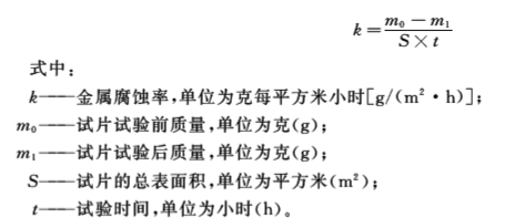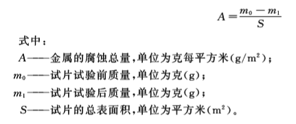 試驗結果評定:金屬腐蝕速率k、金屬腐蝕總量A